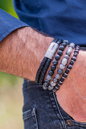 Voor onze armbanden gebruiken we verschillende soorten materialen. Veelal werken we met leer, hout, natuursteen en RVS.