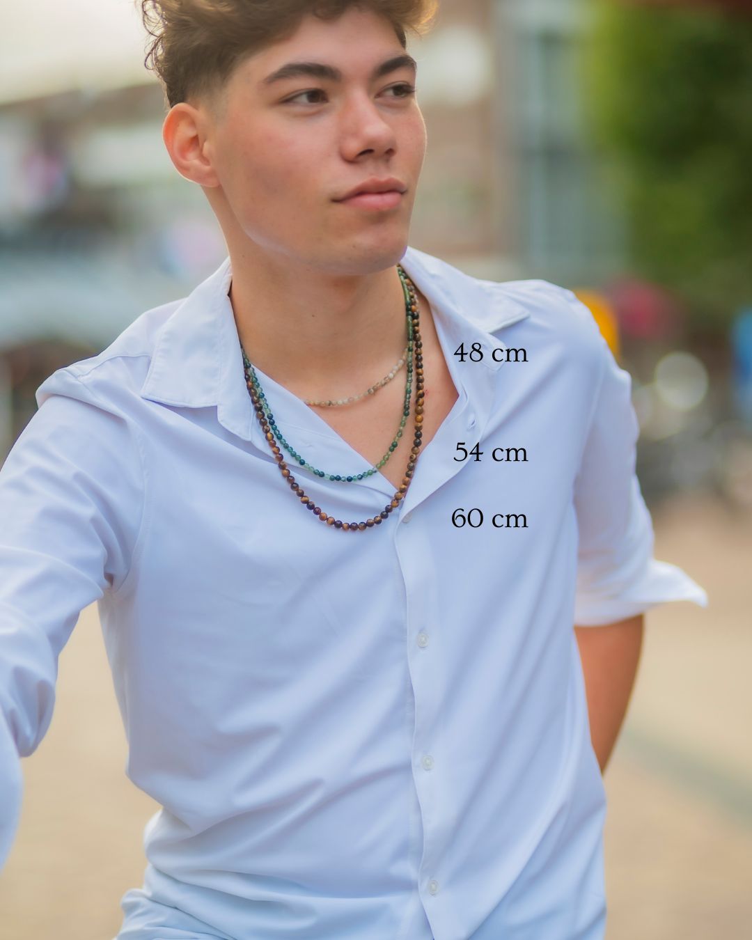 De ketting is verkrijgbaar in 48 cm, 54 cm en 60 cm, en wordt afgewerkt met een duurzame zilverkleurige RVS sluiting. Het natuurlijke en frisse kleurenpalet maakt deze ketting tijdloos en eenvoudig te combineren met diverse stijlen en sieraden uit de by Julian collectie.