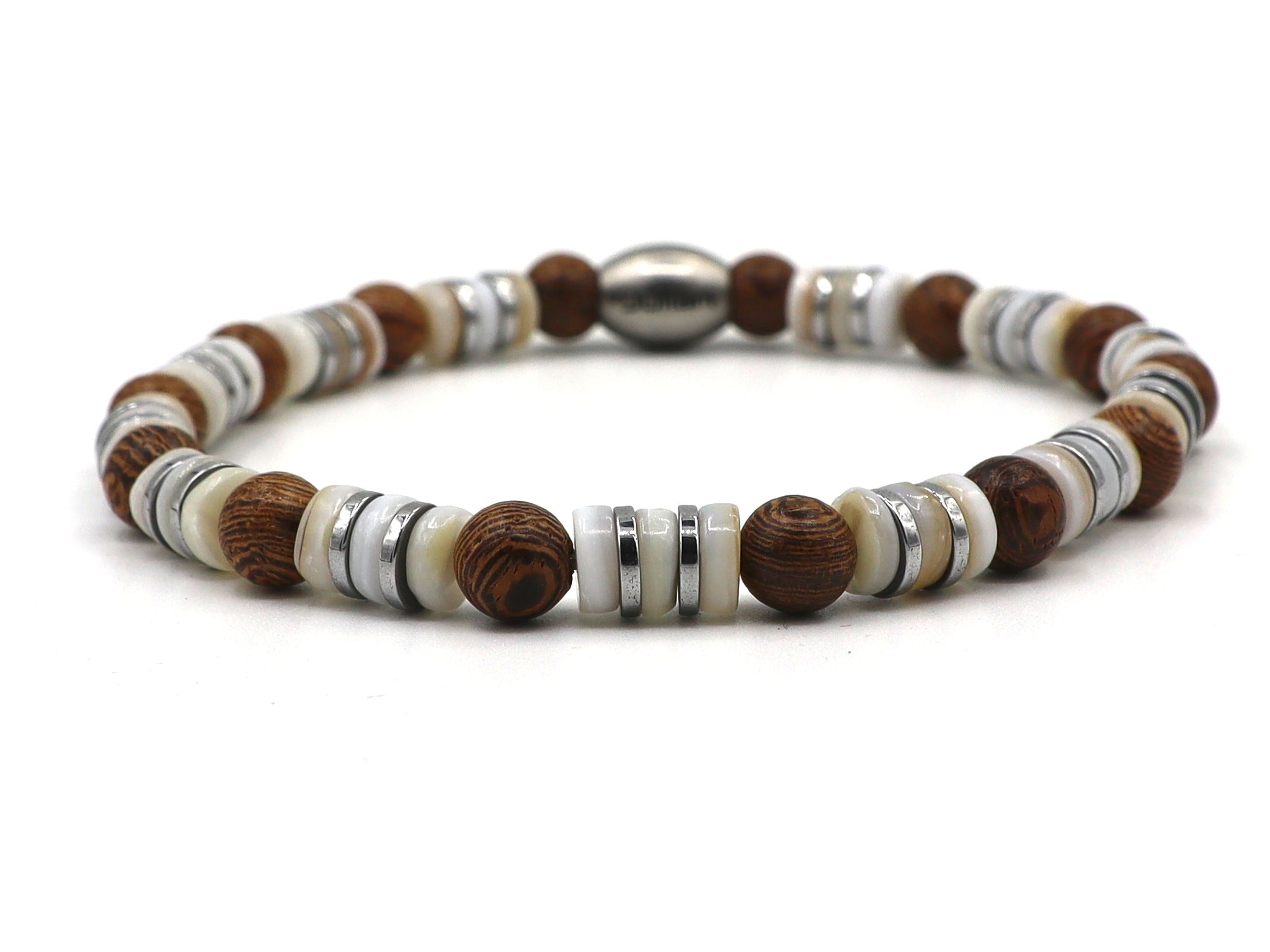 Stylish Men's Bracelet of Shell and Wood