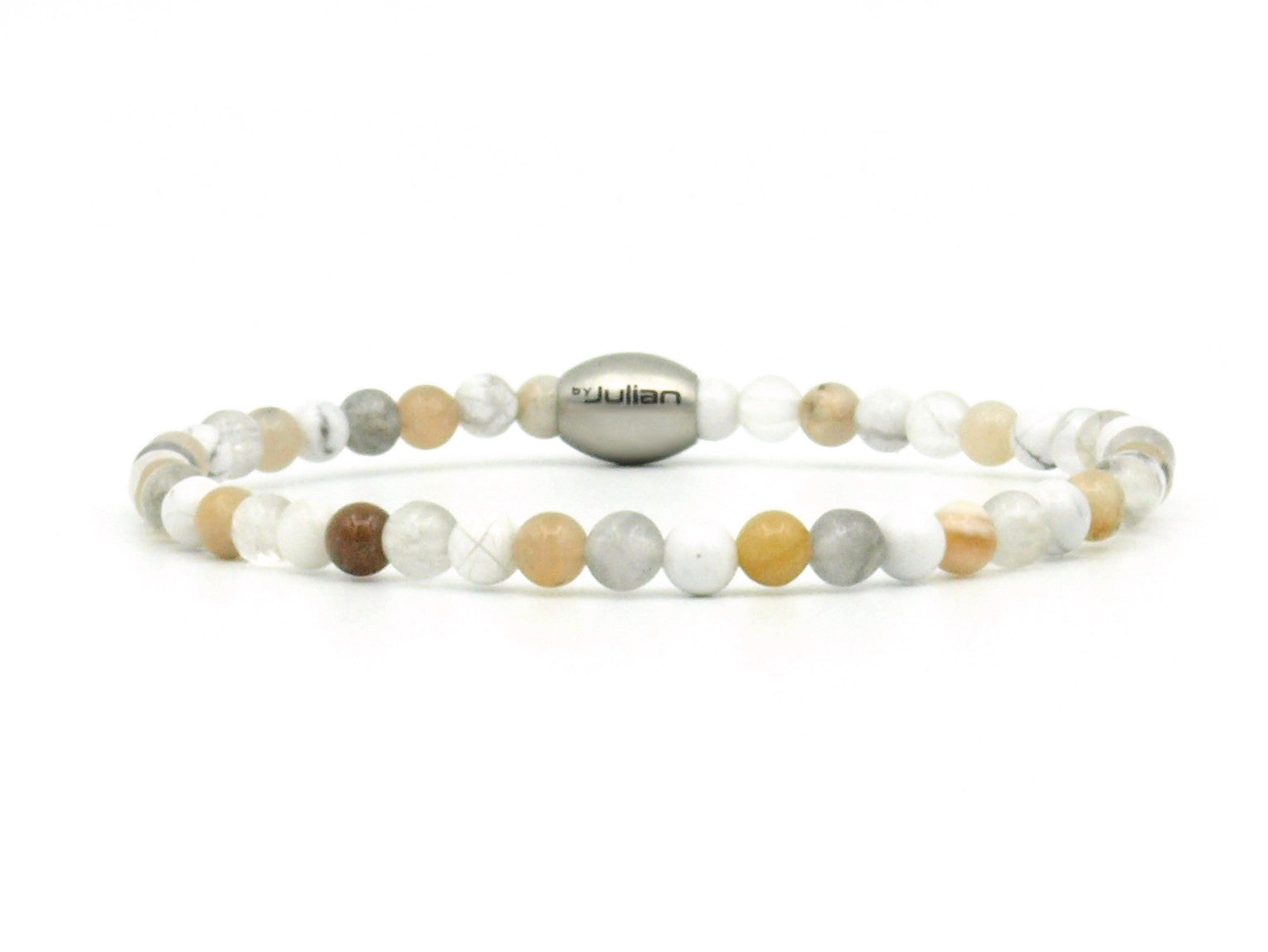 Houten kralen armbanden: Hout is een natuurproduct en kan door het dragen gaan "verkleuren" (iets wat wij van by Julian juist het mooie vinden aan houten kralen). Het wordt aangeraden niet met deze armbanden te gaan douchen/ zwemmen etc.