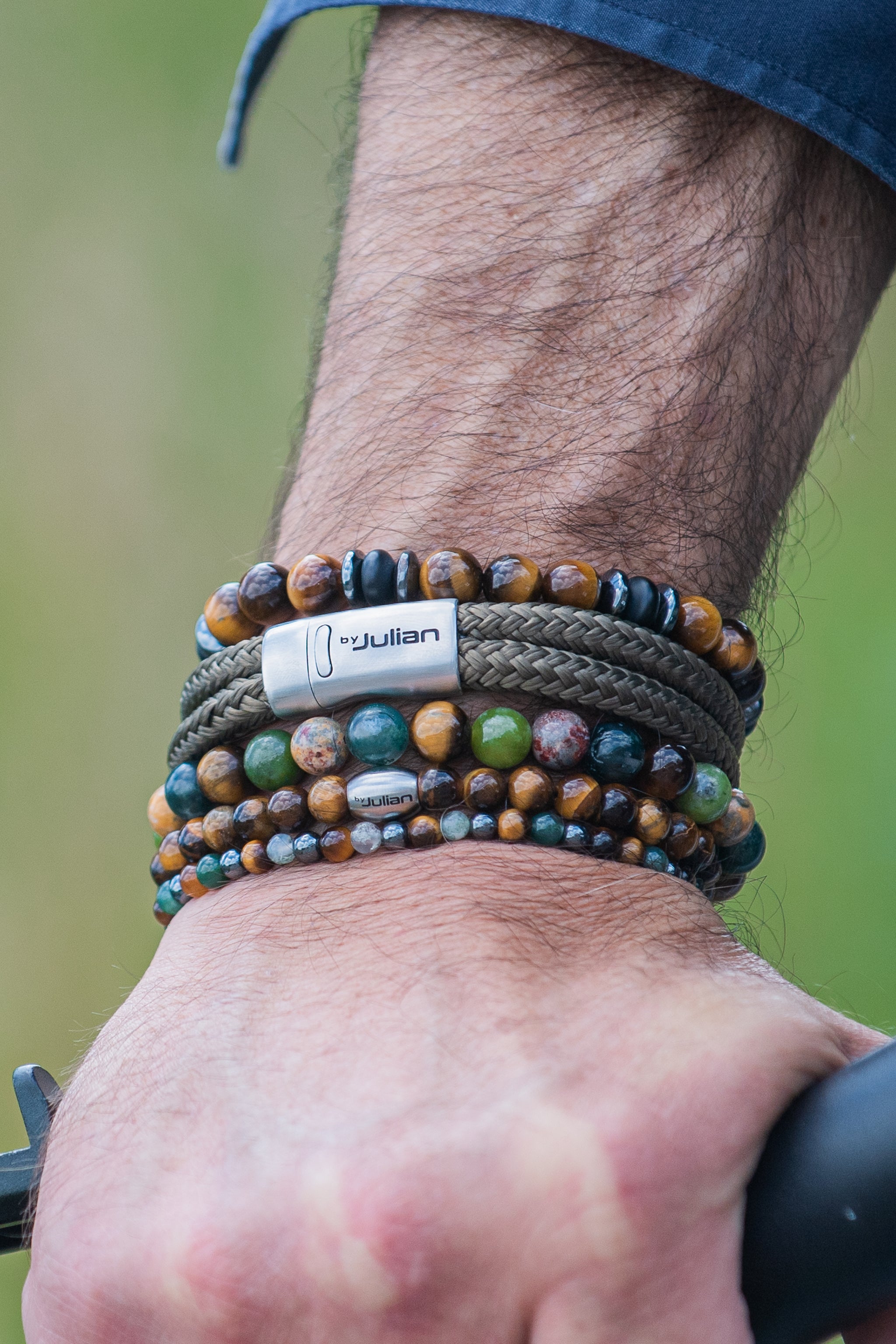 Voor onze armbanden gebruiken we verschillende soorten materialen. Veelal werken we met leer, hout, natuursteen en RVS.